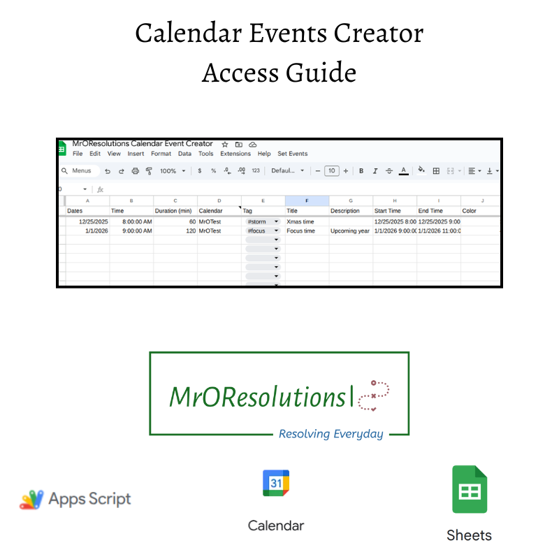 One-Click Sync: A custom Google Apps Script menu that pushes all your entries to your calendar in one go.